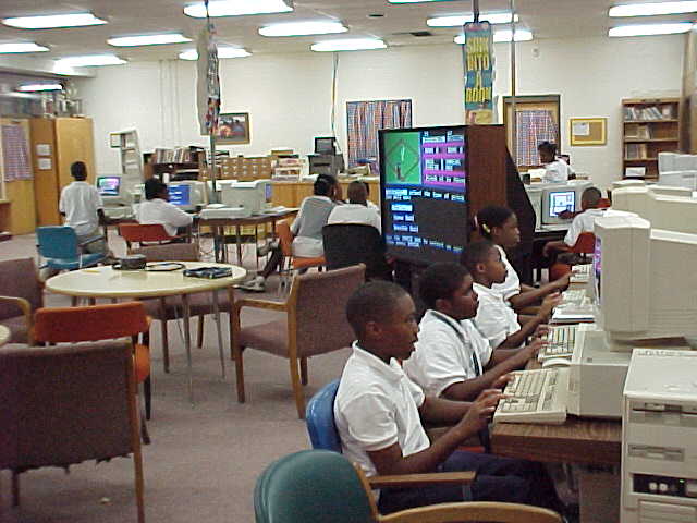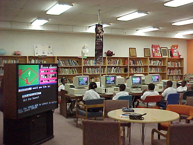 Pictures of the Library/Media Center. Students Playing Grammar Baseball Playing Geosafari Science More Learning and Fun! Mr. Taylor the Media Specialist Mascot Students Doing Research George Jackson Checking His Email